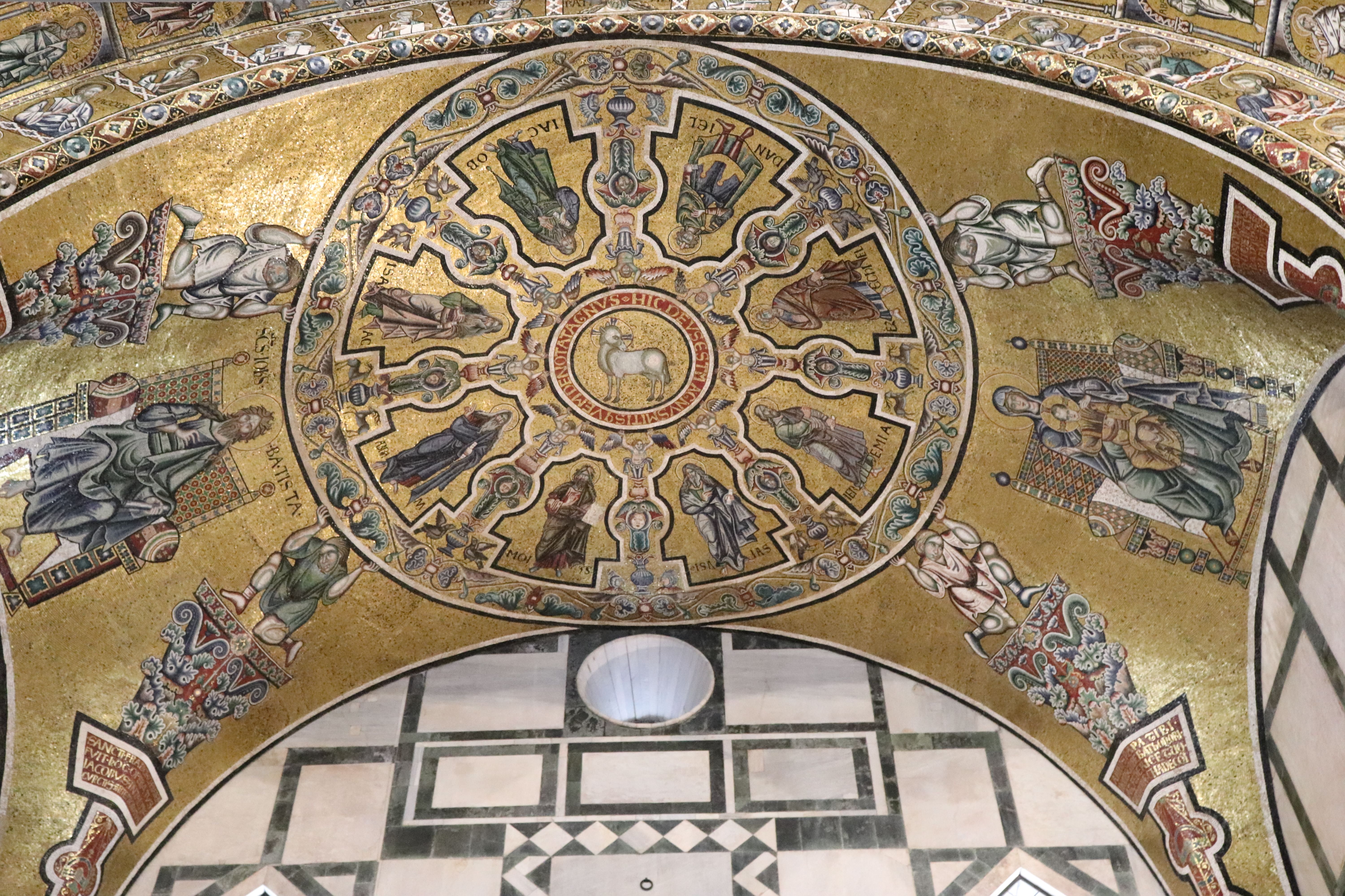 • - The Baptistery is undergoing restoration of the mosaics of the vault.